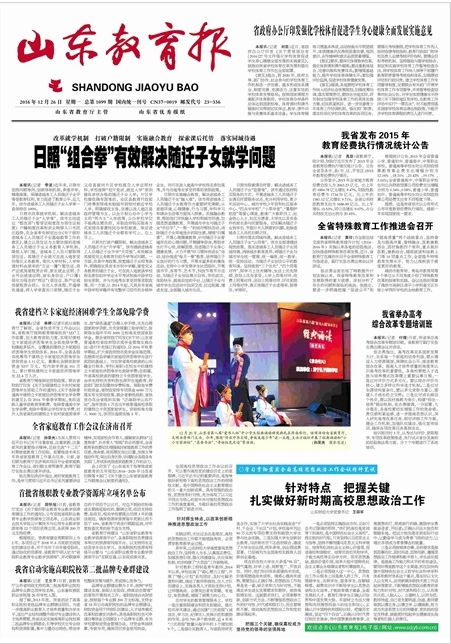 20161226日,《山东教育报》在头版头条位置以《日照“组合拳”有效解决随迁子女就学问题》为题,对我市创新体制机制,保障进城务工人员随迁子女平等受教育权利的经验做法进行了深入报道。